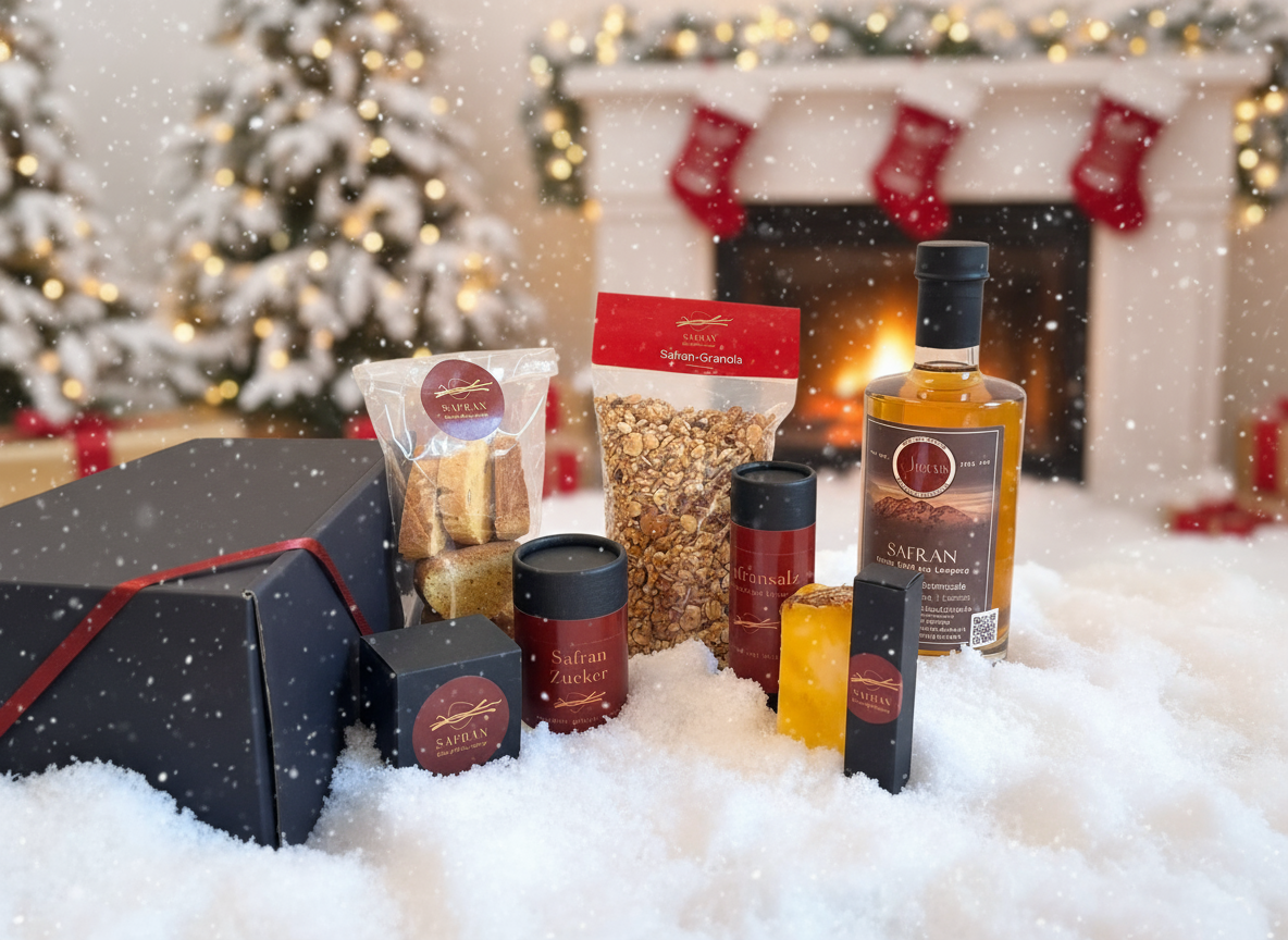 Mit dieser Box betrittst du die nächste Stufe des Safran-Genusses. Neben edlen Feinkost-Spezialitäten und sanfter Safran-Pflege wartet hier ein besonderes Highlight: unser handveredelter Safran Gin – aromatisch, elegant und einzigartig im Geschmack.