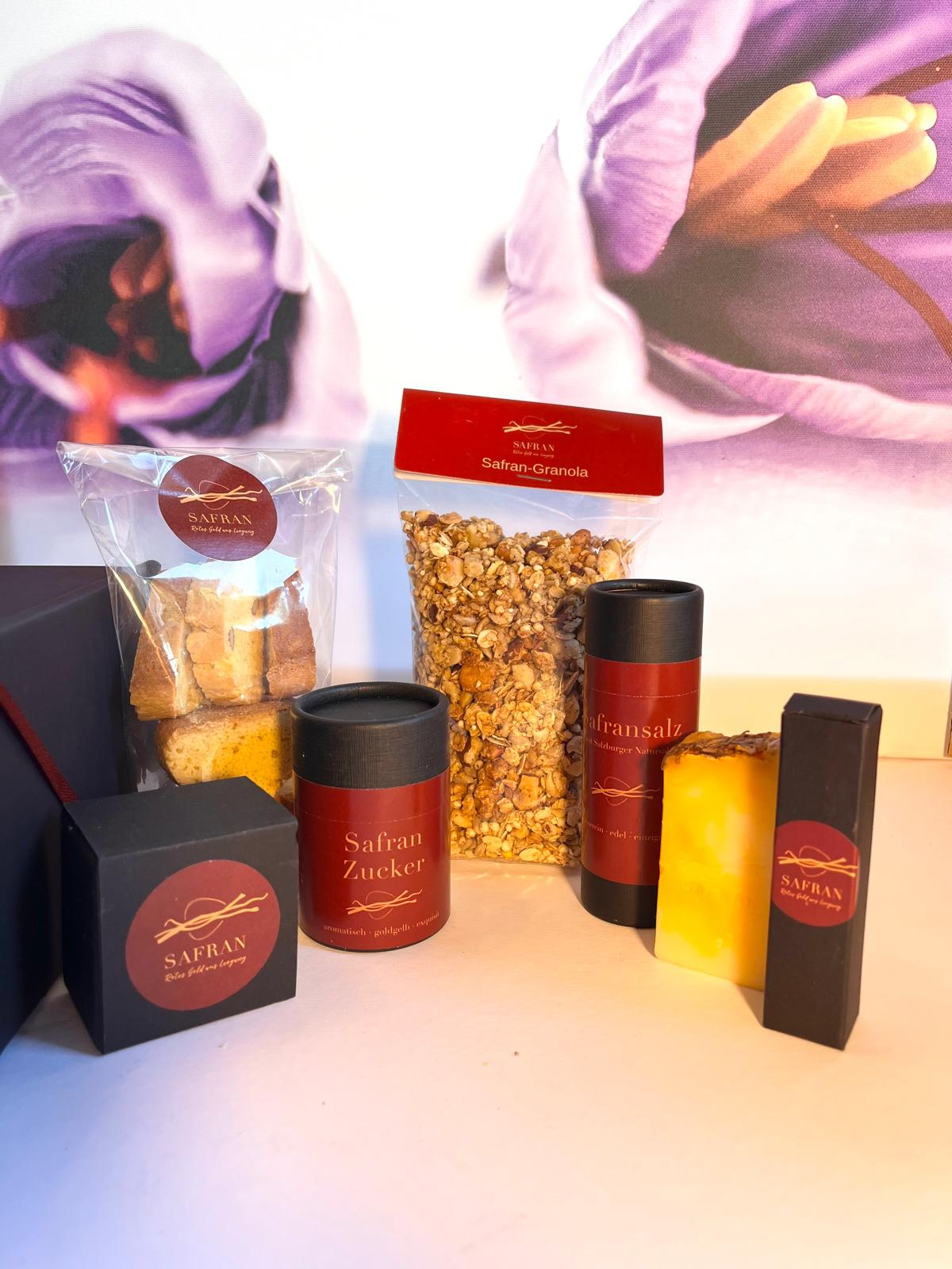 Diese Box verbindet kulinarische Raffinesse mit edler Pflege. Neben feinen Safran-Spezialitäten enthält sie hochwertige Kosmetikprodukte, die die besondere Wirkung des „roten Goldes“ auch auf Haut und Lippen erlebbar machen.